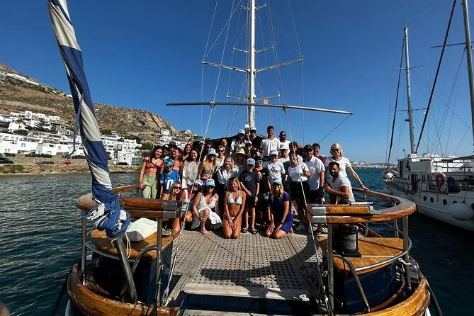 Navega desde Mykonos por las aguas brillantes del Egeo para nadar en las tranquilas playas de Rhenia, comparte un almuerzo y vino local en cubierta, y recorre la antigua Delos con un guía autorizado que revive sus mitos. Prepárate para risas entre desconocidos, sal en la piel y relatos que seguirás recordando mucho después de volver a casa.