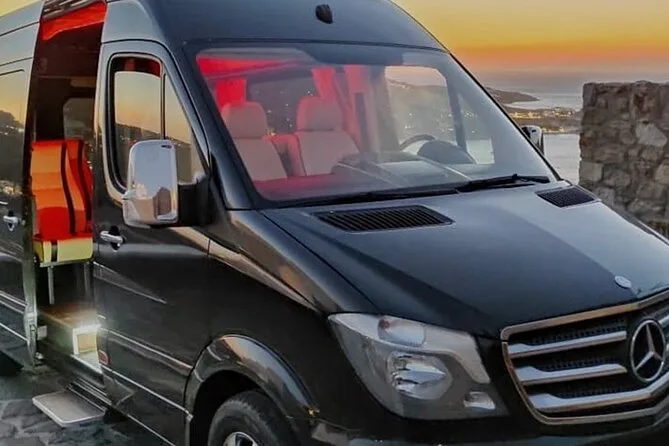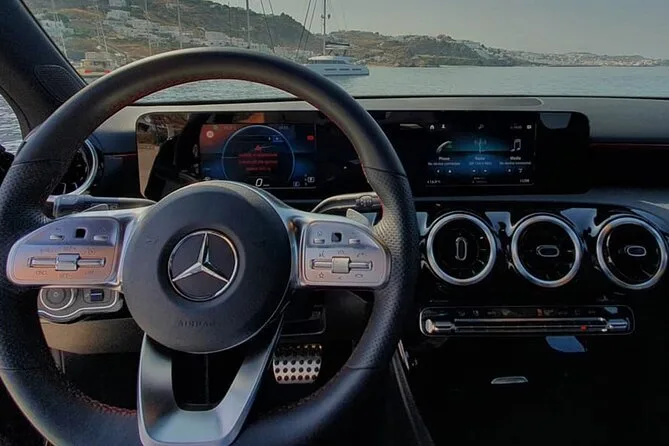 Tu traslado incluye transporte privado en vehículo con aire acondicionado, recogida directa en el aeropuerto o puerto de Mykonos con un conductor local; ayuda con el equipaje; y opciones como asientos para bebés si los necesitas, para que solo te relajes y disfrutes el camino hasta tu hotel o villa.