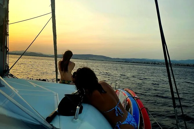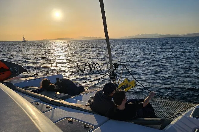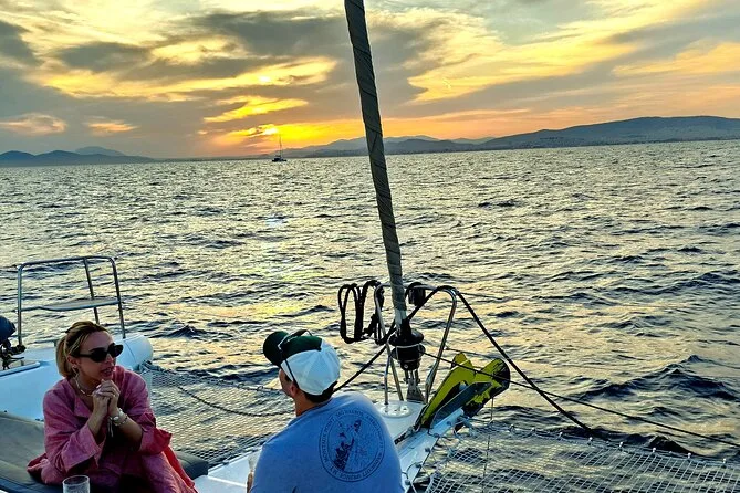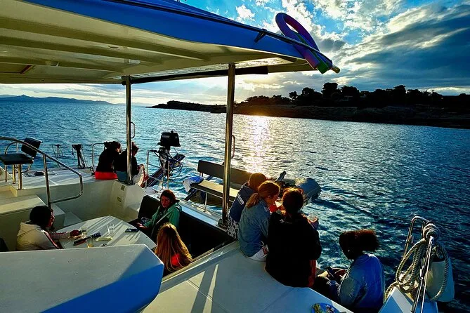 Navega por la Riviera de Atenas en un catamarán pequeño con tripulación local amable, haciendo paradas para nadar en bahías cristalinas y disfrutar de una comida griega sencilla con vino. Ríe durante el almuerzo en Prasonisi y vive momentos de calma flotando en Vouliagmeni — no es un tour cualquiera, es como pasar el día con viejos amigos en el mar.