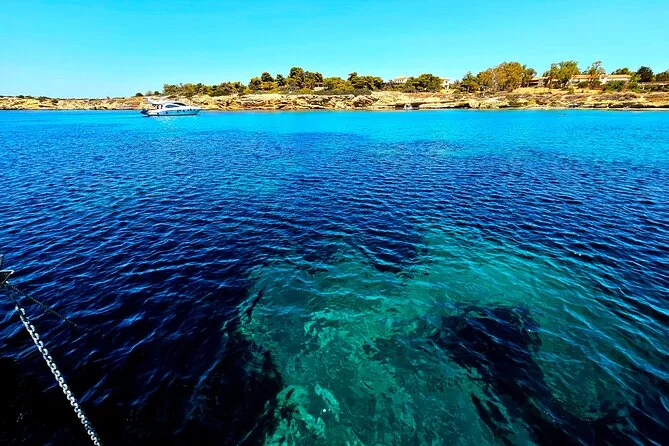 Las paradas principales son la bahía de Vouliagmeni para nadar y la isla Prasonisi para almorzar antes de regresar a Alimos.