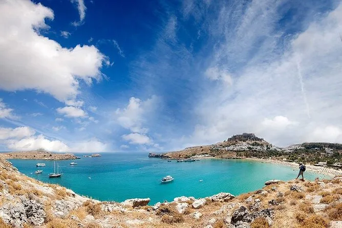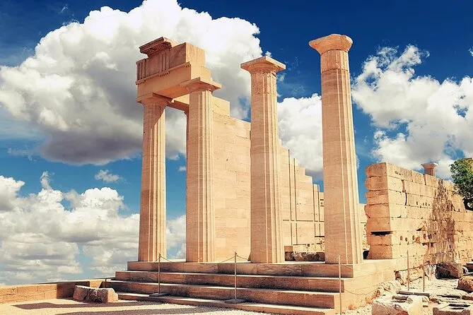 Tu día incluye transporte privado cómodo con recogida flexible en hoteles de Rodas. Un conductor local experto compartirá historias mientras recorres murallas medievales, el puerto de Mandraki, miradores panorámicos sobre la ciudad y la costa hasta llegar a Lindos—con tiempo para perderte por sus callejuelas o subir a su famosa Acrópolis antes de regresar.