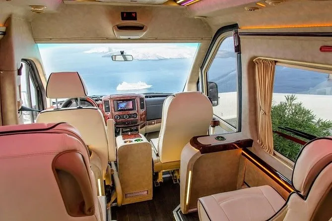 Tu traslado incluye recogida y regreso a cualquier hotel en Santorini, agua embotellada para cada pasajero, todos los impuestos y tasas, y transporte cómodo con aire acondicionado en minivan o minibús moderno. Solo avísanos si necesitas silla para bebé y lo organizamos.