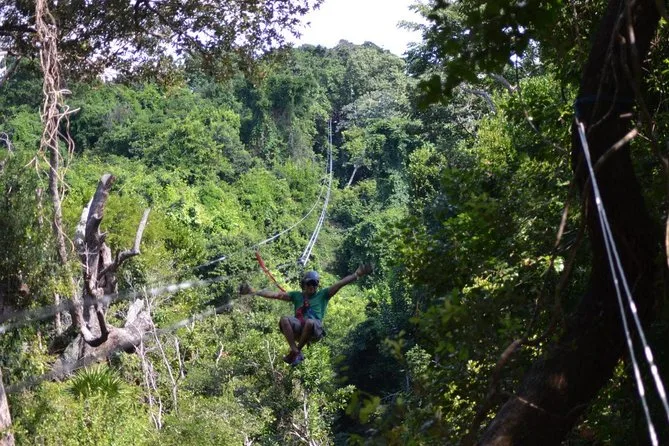 Vivirás la adrenalina en el mejor circuito familiar de tirolesas de Roatán—doce líneas atravesando la jungla real—y luego podrás relajarte en West Bay Beach con tiempo para descansar o explorar. Los guías son amables y muy atentos a la seguridad, ideal para grupos o familias que buscan diversión y tranquilidad en un solo día.