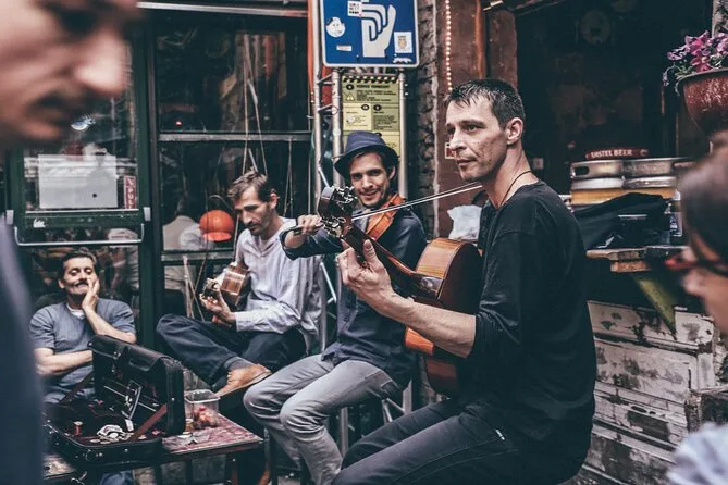 Visitarás la Sinagoga de la Calle Dohány, la Sinagoga Kazinczy, restos del muro del gueto de la II Guerra Mundial, jardines conmemorativos, cafés locales y el memorial Zapatos a orillas del Danubio.
