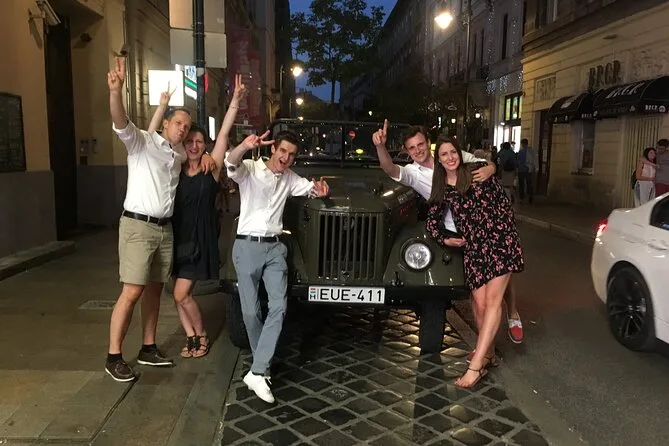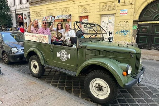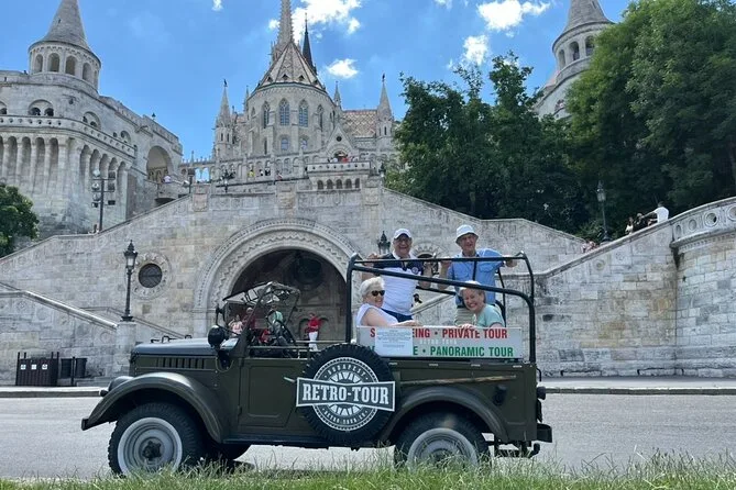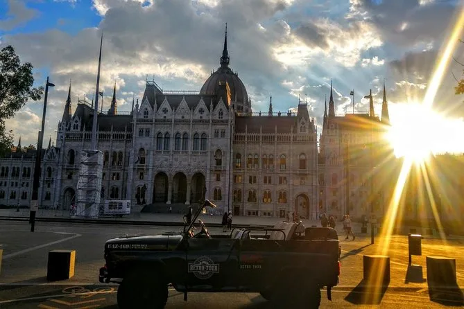 Recorre Budapest en un jeep ruso vintage, con el viento en el pelo o asiento calefactado si hace frío. Para a sacar fotos en sitios como Plaza de los Héroes y Bastión de los Pescadores. Prueba snacks del mercado, disfruta vino caliente o prosecco según la temporada y escucha historias que solo los locales conocen. La ciudad se siente distinta desde un asiento abierto; seguro querrás una hora más antes de volver.