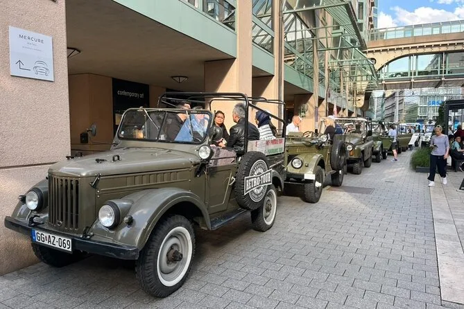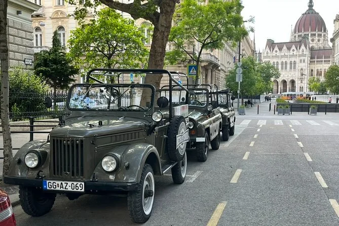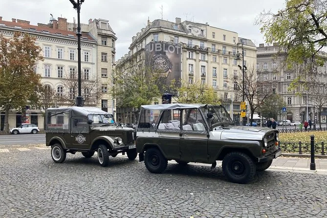 Tu día incluye recogida en tu hotel o dirección preferida en Budapest antes de salir en un jeep militar ruso original de más de 60 años, equipado con cubierta para lluvia y asientos calefactados si hace falta. Disfruta de agua embotellada y vino caliente en invierno o cerveza/prosecco en verano mientras recorres lugares como Plaza de los Héroes y Castillo de Buda. Tendrás WiFi a bordo y tiempo para explorar a pie sitios como el Mercado Central antes de que te dejen donde prefieras.