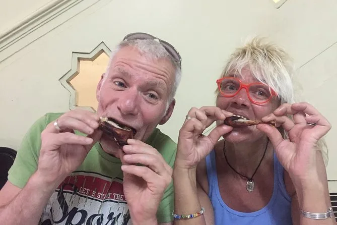 El tour incluye al menos 5 o 6 paradas para probar snacks, bebidas y platos locales.