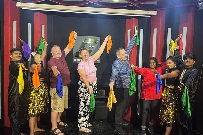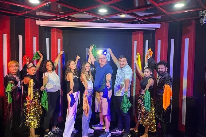 Guía privado con historias exclusivas; agua embotellada para refrescarte; transporte cómodo en coche con aire acondicionado; entradas a estudios en funcionamiento; shows de baile en vivo; y un almuerzo fresco indio—todo listo para que solo disfrutes.