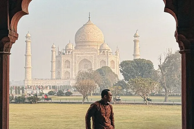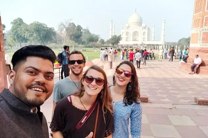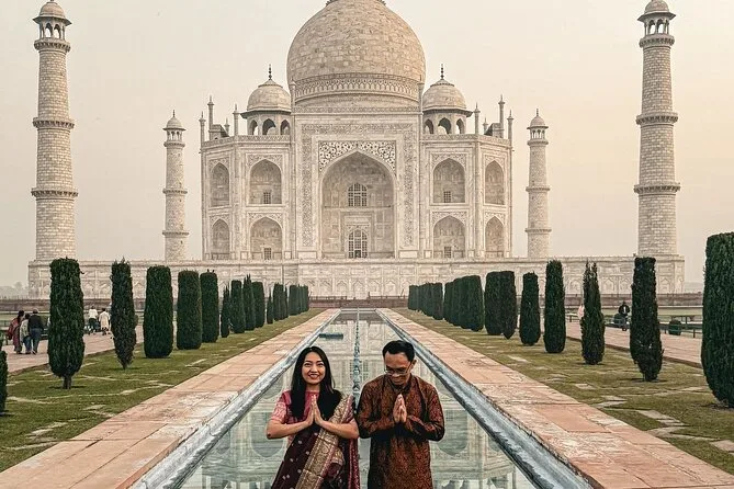 Comienza tu día antes del amanecer con recogida privada en Delhi y llega a Agra justo cuando el sol ilumina las cúpulas de mármol del Taj Mahal. Con un guía local que te contará historias y un desayuno en un hotel 5 estrellas, explorarás el Fuerte de Agra y descubrirás rincones tranquilos en el Baby Taj antes de regresar lleno de recuerdos.
