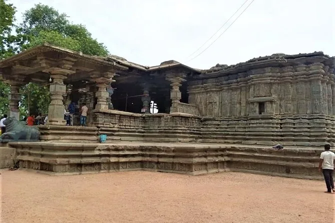 Salimos de Hyderabad justo cuando la ciudad empezaba a despertar, con el aire fresco y un poco brumoso. El viaje a Warangal dura unas horas, pero vale la pena por lo que nos esperaba. Nuestro guía, Praveen, nos contó historias sobre la dinastía Kakatiya mientras cruzábamos campos salpicados de caléndulas y puestos de té a la orilla del camino. La primera parada: el Templo Ramappa. El lugar parece detenido en el tiempo; se siente ese aroma terroso de las piedras antiguas, y si miras hacia el techo puedes ver los famosos “ladrillos flotantes”. Praveen nos mostró las tallas de bailarines y músicos en las columnas de granito, cada una diferente. Pasé la mano por una de ellas, fresca y suave, desgastada por siglos de manos antes que la mía.