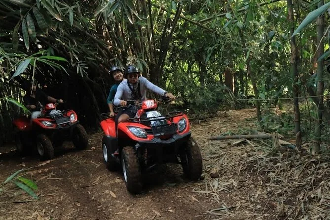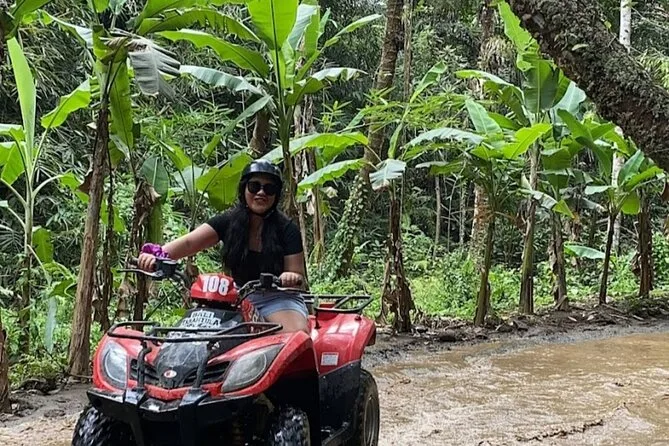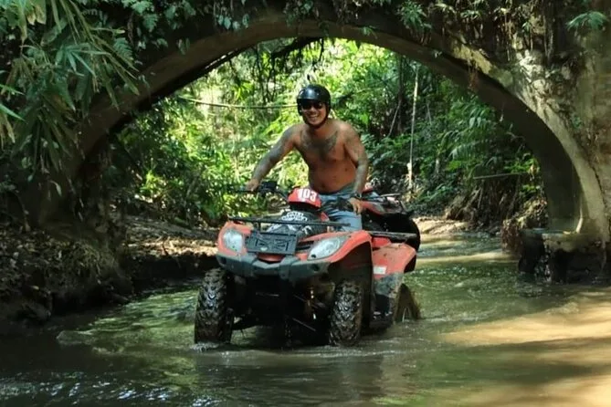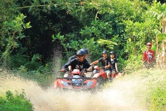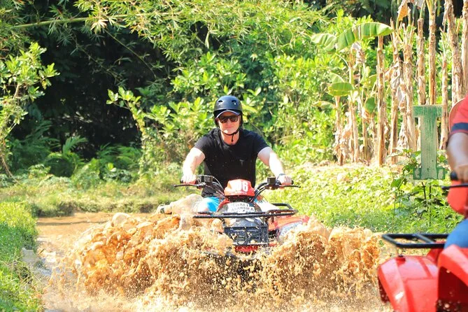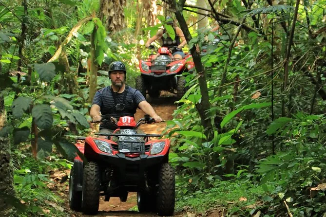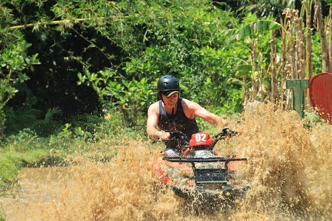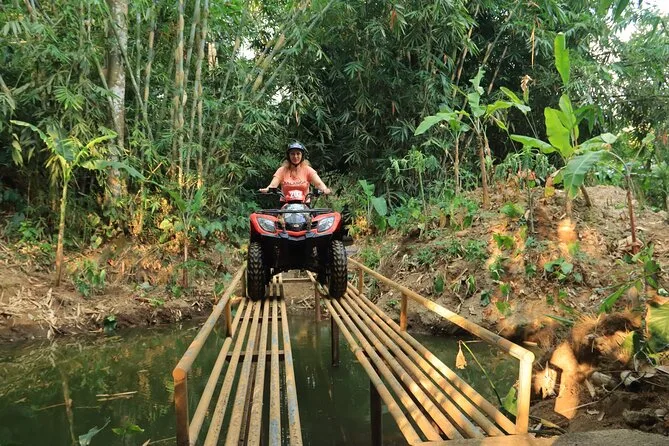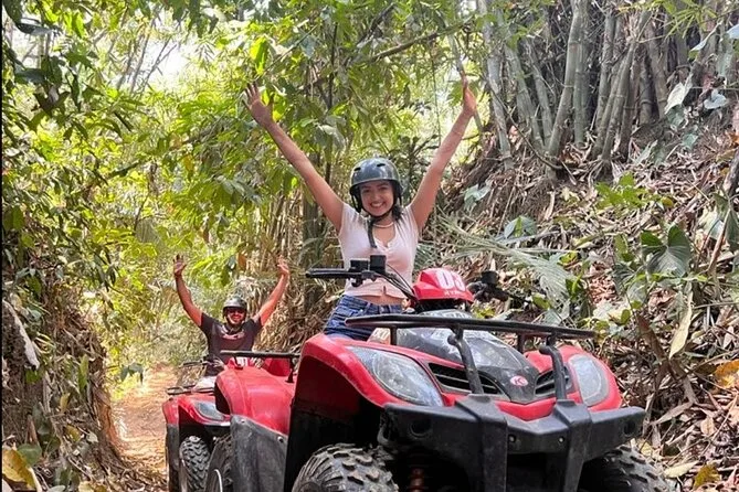 Tu día incluye recogida en hotel o puerto en minivan con aire acondicionado, todo el equipo de seguridad (casco, toalla, taquilla), seguro personal, guía experto local durante todo el recorrido por junglas y arrozales—con tiempo para ducharte antes de disfrutar un almuerzo incluido—y traslado de regreso a tu alojamiento.