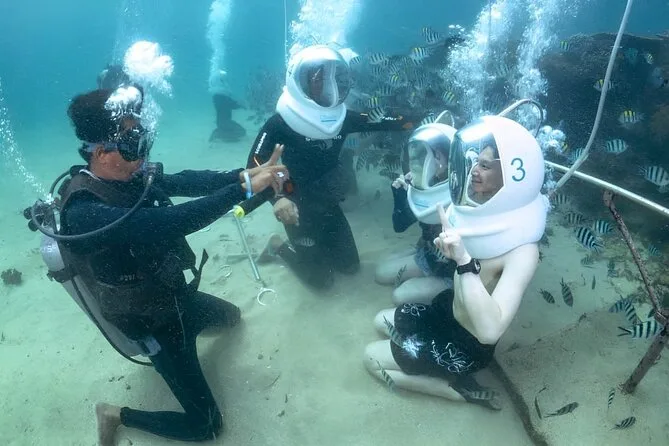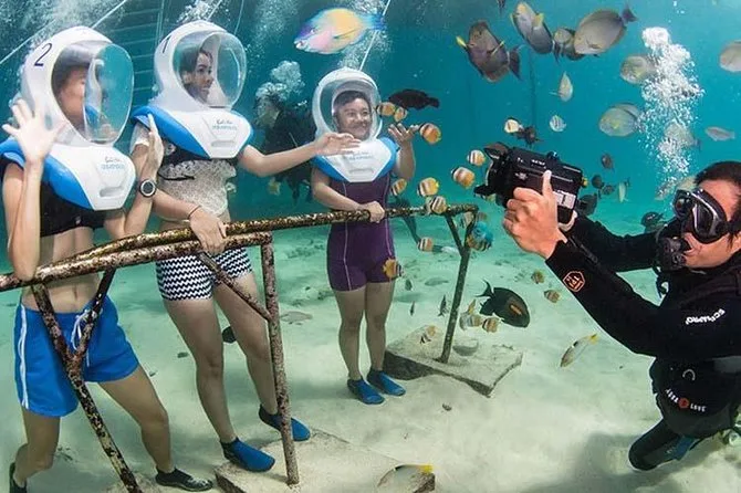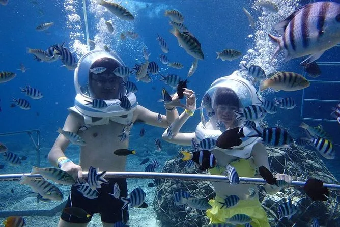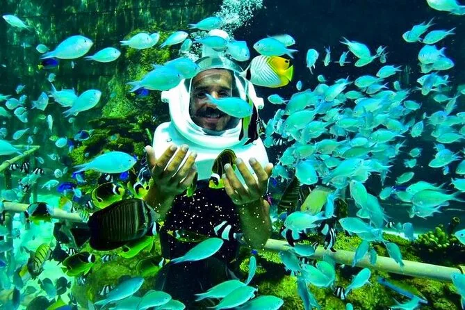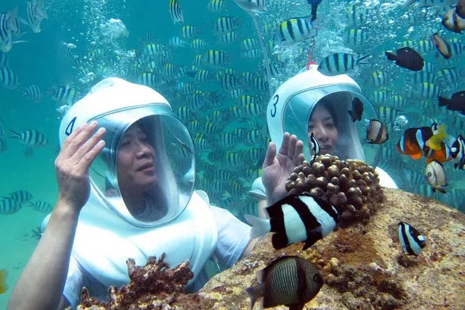 Sumérgete en el océano de Bali en Tanjung Benoa y camina por el fondo marino con un guía local a tu lado. Llevarás un casco especial para respirar mientras peces nadan a tu alrededor y la luz se filtra en aguas verdes. Con todo el equipo incluido y opción de recogida en hotel, es una experiencia bajo el agua que recordarás mucho tiempo después de secarte.