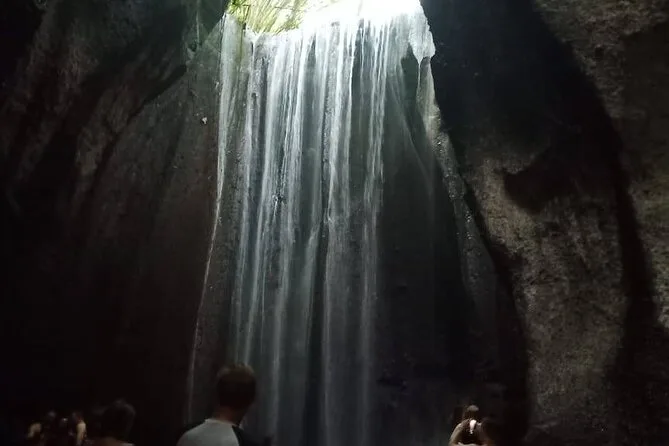 Después fuimos al Jardín de Agua Tirta Gangga. No esperaba que los koi fueran tan atrevidos—me mordisqueaban los dedos cuando los metía en el agua. Allí se escucha un sonido tranquilo: solo el agua corriendo y risas de niños escondidos tras los setos. El almuerzo no estaba incluido, pero compramos algo picante en un puesto afuera (aún no sé cómo se llamaba). El camino a la cascada tardó más de lo que pensé, pero al llegar, el interior de la cueva estaba fresco y solo se oía el agua golpeando la roca. Mis zapatos se empaparon—y no me importó.