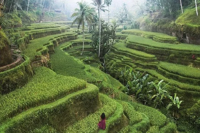 Te levantarás antes del amanecer para visitar las Puertas del Cielo en Bali, luego recorrerás antiguos jardines de agua y arrozales vibrantes con un conductor privado que también es fotógrafo. Prueba almuerzos picantes en warungs locales y refréscate bajo cascadas en la selva antes de volver cansado pero feliz, con la cámara llena y las sandalias embarradas.