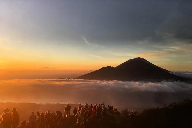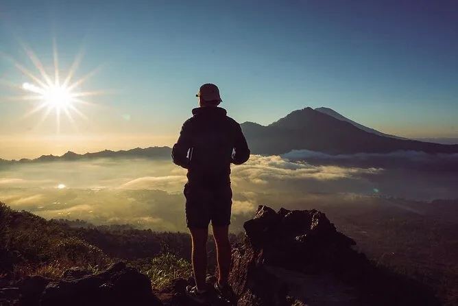 Empezarás antes del amanecer con recogida en hotel y subirás el Monte Batur para ver el amanecer guiado por un local. Disfruta un desayuno en el volcán mientras la luz ilumina el lago Batur, explora cráteres volcánicos en el descenso y, si quieres, relaja tus músculos en aguas termales antes de volver — una experiencia que recordarás mucho después de quitarte el polvo.