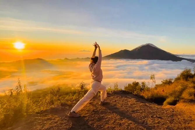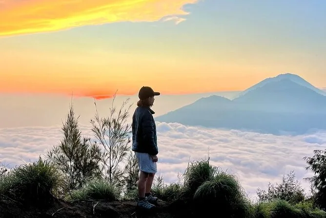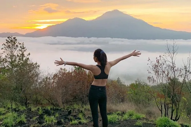 Tu día incluye recogida y regreso al hotel, entrada a aguas termales naturales si eliges esa opción, uso de linterna y bastón para seguridad en la oscuridad, agua embotellada para mantenerte hidratado, desayuno en la cima del Monte Batur al amanecer, guía de trekking en inglés durante todo el recorrido, café o té en las paradas y hasta una visita a una plantación local de café antes de regresar.