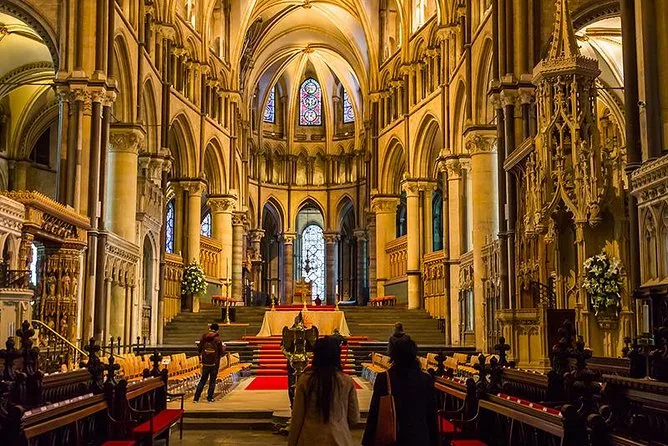 El viaje a Canterbury no fue largo, ¿una hora tal vez? Difícil saber, porque terminamos charlando con una pareja de Manchester sobre sus pueblos costeros favoritos. Al entrar en la Catedral de Canterbury, todo se volvió silencio salvo el eco de nuestros pasos sobre piedras que llevan siglos ahí. Había un aroma sutil, mezcla de cera de vela y madera vieja, y la luz del sol colándose por vitrales en colores que no sabría nombrar. Nuestro guía nos llevó junto a tumbas y arcos, contando historias sobre el asesinato de Thomas Becket que me pusieron la piel de gallina. Es curioso cómo la historia pesa más cuando estás parado justo donde sucedió.