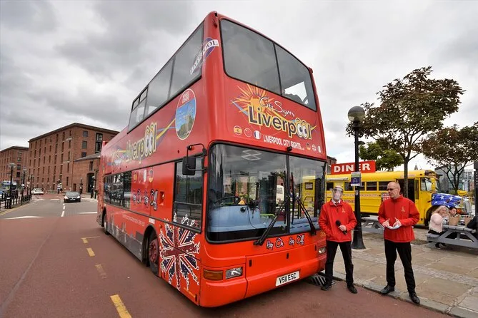 Viaja en el bus descapotable de Liverpool pasando por lugares emblemáticos como Royal Albert Dock y las dos catedrales, bajando donde te apetezca. Con guías locales o audio en 10 idiomas, más una copa de cava gratis en Philharmonic Dining Rooms, tendrás espacio para desvíos espontáneos y momentos auténticos — como risas en Chinatown o música que se escapa de rincones escondidos.