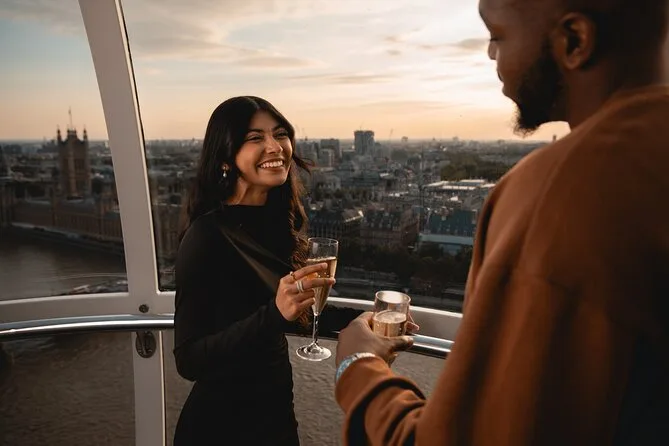 Sube directo al London Eye con embarque prioritario y olvida las colas. Brinda con una copa de Moët & Chandon servida por tu anfitrión mientras disfrutas de las vistas de Londres, descubriendo juntos sus monumentos y compartiendo risas o momentos de calma. La ciudad se siente diferente desde arriba — más ligera — y seguro desearás que el viaje dure un poco más.
