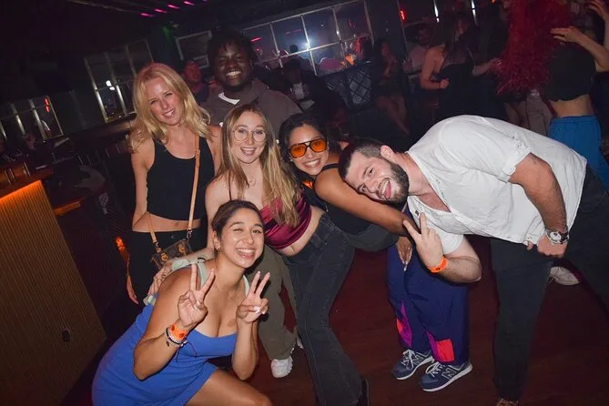 Tu noche incluye entrada gratis a todos los locales, chupitos en cada parada, descuentos exclusivos en bebidas toda la noche, anfitriones amigables que te guían seguro por los bares y clubs del centro de Londres, además de fotos de grupo mientras avanzas — solo lleva tu DNI y ellos se encargan del resto.