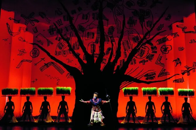 El intermedio llegó antes de lo que esperaba. Mi sobrina quería un helado (“¡de fresa!”), así que nos pusimos en la fila con familias y parejas charlando sobre sus canciones favoritas. Detrás de nosotros, un niño intentaba rugir como Simba — la verdad parecía más un estornudo, pero su papá lo animaba igual. La segunda parte fue aún más intensa; las escenas de Scar tenían sombras tan marcadas que lo hacían ver el doble de amenazante. La música de Elton John en vivo se siente diferente — “Él vive en ti” me hizo emocionar un poco (no me lo esperaba). Así que sí, al final todos estábamos de pie aplaudiendo. Al salir al fresco de la noche, todavía tenía confeti pegado en la manga.