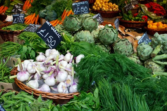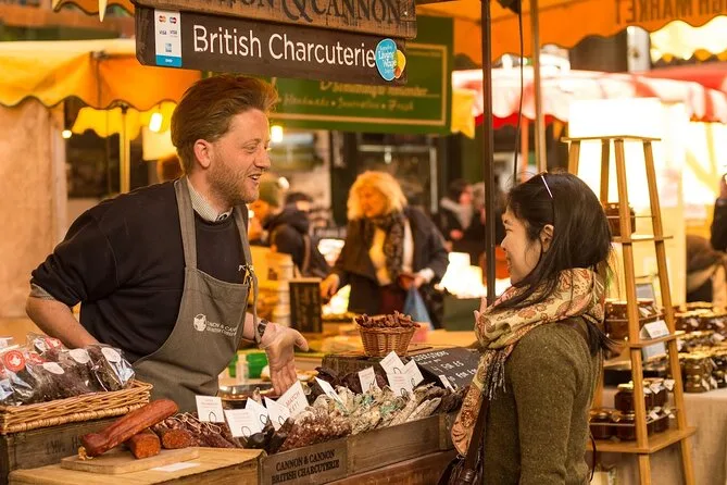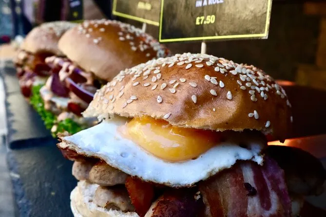 Tu día incluye degustaciones guiadas por Borough Market o Soho: sausage rolls, bocadillos de bacon y huevo, fish & chips, croquetas o bao buns según la ruta; quesos británicos acompañados de cerveza o sidra; postres con té; tres degustaciones de ginebra en Soho; y un Plato Secreto sorpresa—todo con un guía local amable en grupos pequeños.