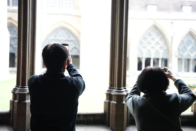 Saltamos la fila en Westminster Abbey (menos mal — lloviznaba y la gente estaba hecha un desastre) y entramos en un silencio absoluto salvo por el eco de los pasos en la piedra. El aire olía a antiguo — a velas y polvo. Nuestra guía nos mostró la tumba de la reina Isabel I y luego la esquina de los poetas; había algo conmovedor en ver nombres que había leído en el cole grabados en mármol. Alguien preguntó por la coronación del rey Carlos III y ella tenía esa habilidad de hacer que la historia reciente se entrelazara con la antigua.