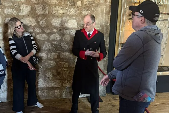 Empezamos con un encuentro privado con un Beefeater en un pequeño patio lateral. Se presentó como Yeoman Sergeant Clark — “llámenme Clark,” sonrió — y nos contó historias de vivir dentro de la Torre con su familia (algo que ni sabía que existía). Alguien preguntó por los cuervos y dijo que si alguna vez se van, “el reino cae.” Nos dejó tomar fotos con él; intenté ponerme serio pero junto a su uniforme parecía un turista perdido (lo cual… sí). Clark respondió todas las preguntas, incluso las incómodas sobre fantasmas.