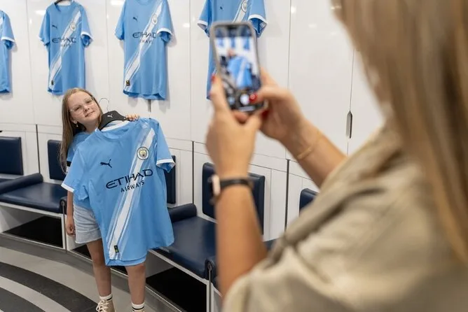 Explora los rincones secretos del Estadio Etihad: recorre el túnel de cristal, siéntate en el banquillo de Pep Guardiola y descubre exposiciones inmersivas con un guía local. Vive la experiencia detrás de cámaras en día de partido — desde vestuarios hasta el campo — y llévate contigo la energía vibrante del estadio.