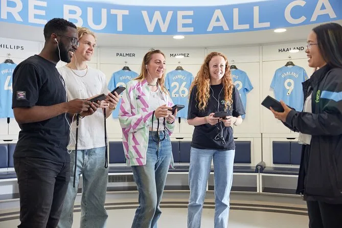 Tu experiencia incluye entrada guiada al Estadio Etihad con guía audiovisual, acceso a zonas exclusivas como vestuarios y suites de hospitalidad, exposiciones inmersivas con contenido holográfico y cine 360, además de tiempo en la sala de prensa y asientos junto al campo antes de finalizar en la City Store para comprar recuerdos.