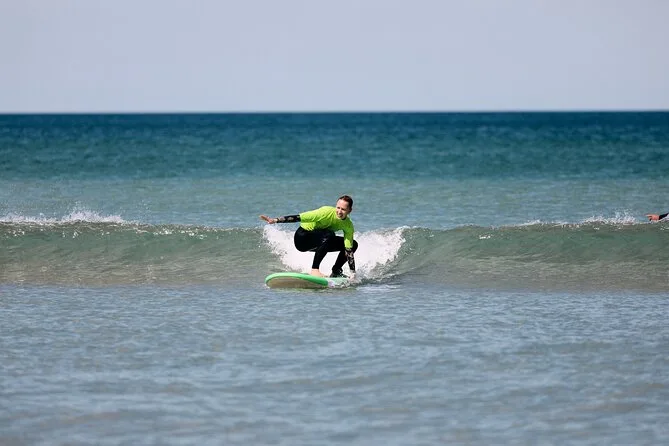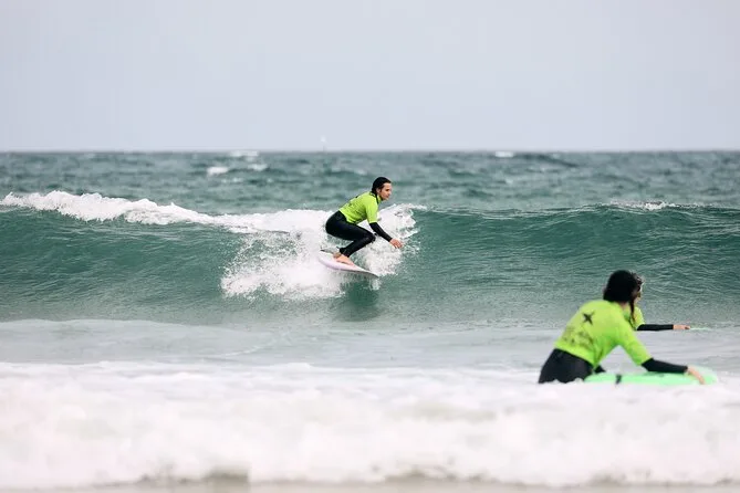 Tu sesión incluye neopreno (más guantes y botas si hace falta), tabla adaptada a tu nivel, acceso a duchas calientes y vestuarios en Escape Surf School en Newquay, todos los impuestos incluidos y mucho ánimo de los entrenadores locales para que vuelvas a tierra con sabor a sal y una sonrisa.