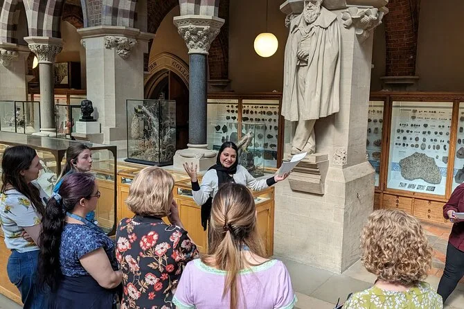Recorrerás el famoso Museo de Historia Natural de Oxford con un guía local que te hará preguntas que probablemente nunca habías considerado. Descubre las conexiones coloniales detrás de las exposiciones, toca las frescas columnas de piedra y ríe con momentos inesperados — todo mientras ves colecciones conocidas bajo una luz nueva que recordarás mucho tiempo después.