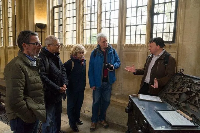 Tu día incluye un paseo guiado por los escenarios de Harry Potter en el centro de Oxford con historias de un guía local, entradas para la Divinity School del Bodleian o New College (según disponibilidad), paradas en lugares emblemáticos como la Radcliffe Camera y el Puente de los Suspiros, y tiempo para probar dulces temáticos en el Covered Market antes de terminar cerca del punto de inicio.