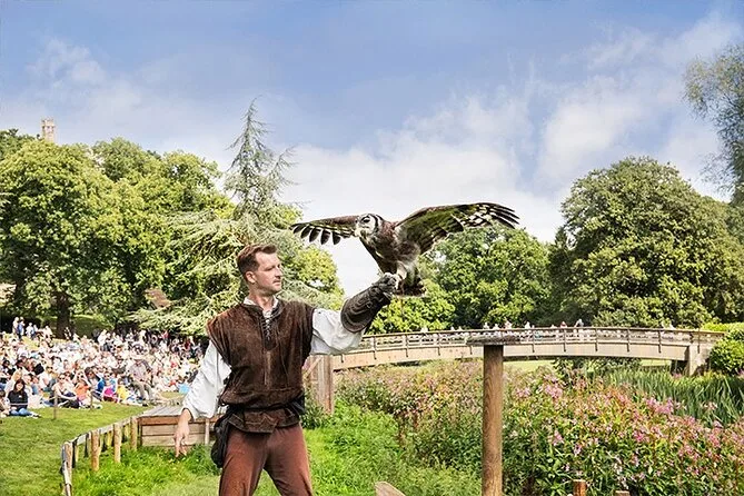 Recorre pasillos centenarios en Warwick Castle, disfruta de águilas y cóndores volando justo encima en shows en vivo, y contempla bolas de fuego lanzadas por un trabuquete medieval—todo incluido con tu entrada. Prepárate para reír, sorprenderte y sentir un poco de asombro mientras exploras grandes salas y jardines llenos de historias locales.