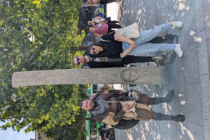 Nos adentramos por callejones serpenteantes del Barrio Vikingo y Medieval, parando donde Einar señalaba lugares de antiguas sagas nórdicas y datos que jamás había escuchado (al parecer, Dublín fue fundada por vikingos que valoraban la cerveza tanto como la batalla). Hubo un momento frente a St. Audoen’s donde nos habló de las primeras murallas de la ciudad—casi podía imaginar el barro y la madera bajo mis pies. El aroma a pan fresco de una panadería cercana se mezclaba curiosamente con el cuero del disfraz de Einar. En un momento nos dejó sostener una espada—aunque vigilaba con ojo avizor, bromeaba sobre “seguridad laboral” y nos hacía reír a todos.