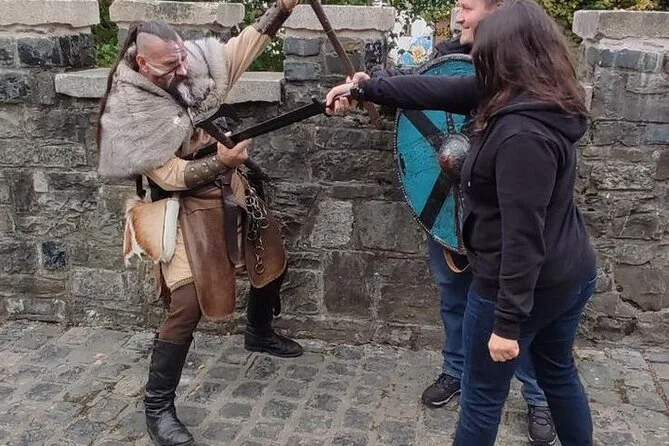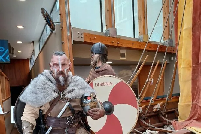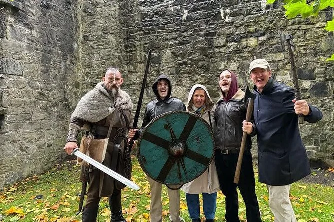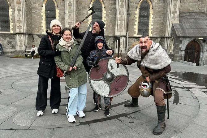 Tu día incluye un paseo interactivo por el Barrio Vikingo y Medieval de Dublín con un guía guerrero disfrazado que hace la historia viva con relatos y humor; podrás manejar réplicas de espadas, escudos y hachas bajo supervisión—y todo es accesible, ya sea que uses cochecito o silla de ruedas.
