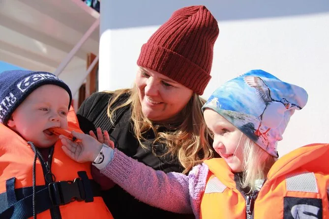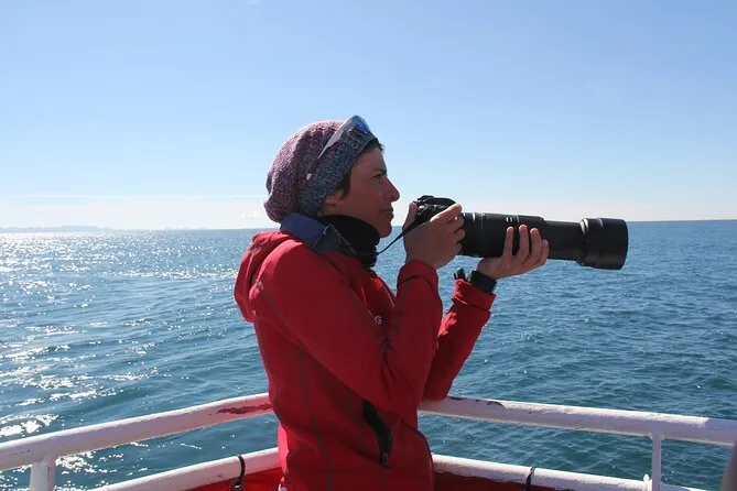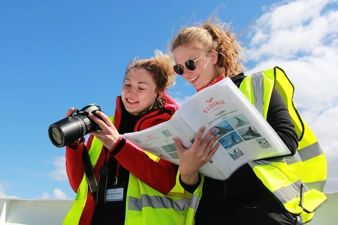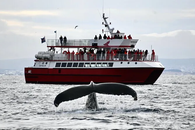 Tu día incluye un crucero de 2 a 3.5 horas para avistar ballenas desde Reykjavik con guía local en vivo en inglés (y a veces islandés), WiFi gratis para compartir fotos al instante, overoles y impermeables gruesos para abrigarte en cubierta aunque haga viento o llueva, y acceso a una pequeña exhibición de vida salvaje antes o después del paseo.