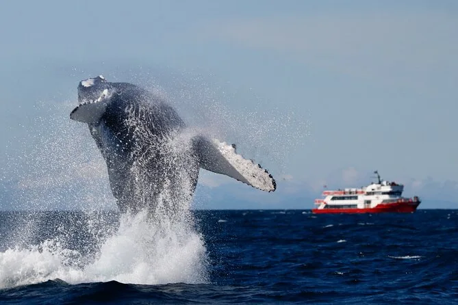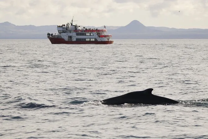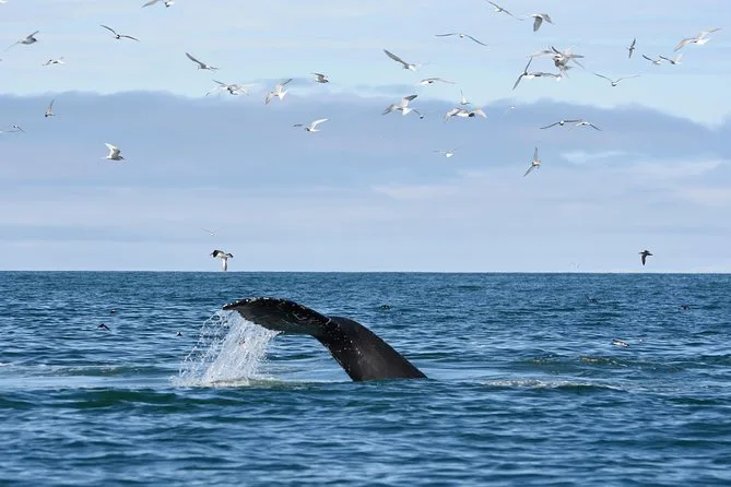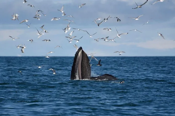 Podrás ver ballenas jorobadas, minkes, delfines, marsopas y varias aves marinas.