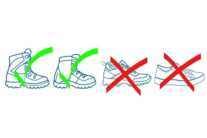 Ropa impermeable, cálida y transpirable, además de botas de senderismo que cubran los tobillos; si necesitas, puedes alquilar equipo en el punto de encuentro.