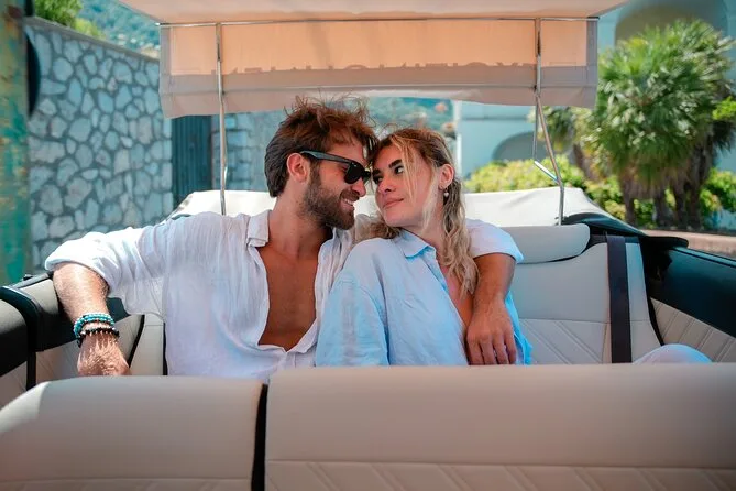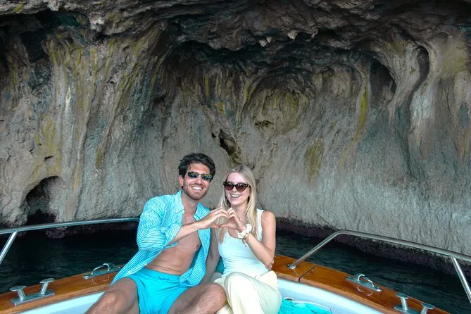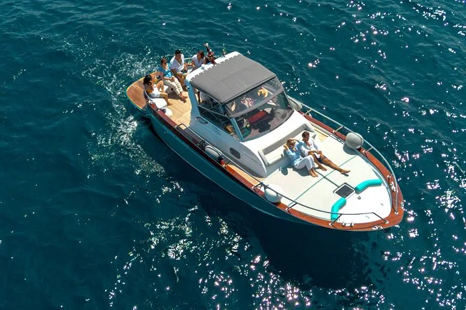 Tu día comienza con un traslado de ida desde el centro de Sorrento al Porto di Piano di Sorrento para embarcar. Contarás con un patrón que habla inglés que te guiará por la costa de Capri con paradas para nadar o hacer snorkel cerca de sus famosas grutas. A bordo se sirve un sándwich caprese y snacks, junto con refrescos, cerveza, vino, Prosecco y limoncello casero mientras regresas al puerto de Sorrento al atardecer.