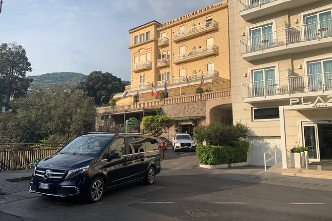 Tu día privado incluye recogida en hotel en Sorrento o Nápoles en un Mercedes con aire acondicionado y conductor local que habla inglés; agua embotellada durante todo el recorrido; además de todos los peajes, aparcamientos, gasolina e impuestos — para que solo te preocupes de disfrutar cada parada y volver cómodo al final del día.