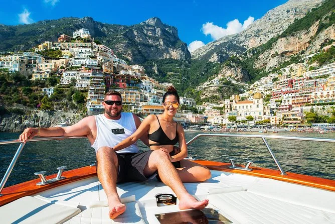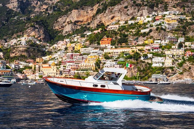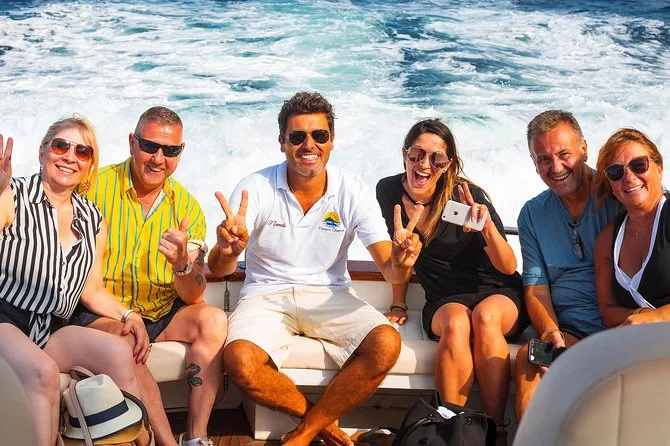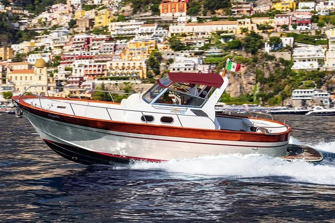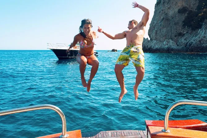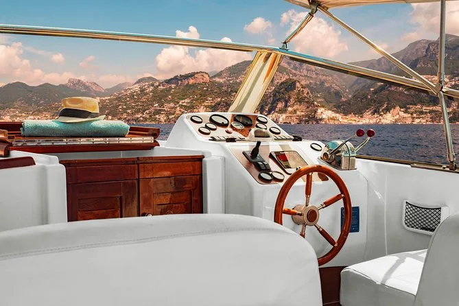 Tu día incluye recogida en hotel desde Sorrento (o punto de encuentro), navegación por la costa con paradas para nadar en calas tranquilas, tiempo libre en Amalfi y Positano para pasear o comprar a tu gusto, además de bebidas y snacks secos servidos a bordo por tu patrón de habla inglesa antes de regresar por la tarde.