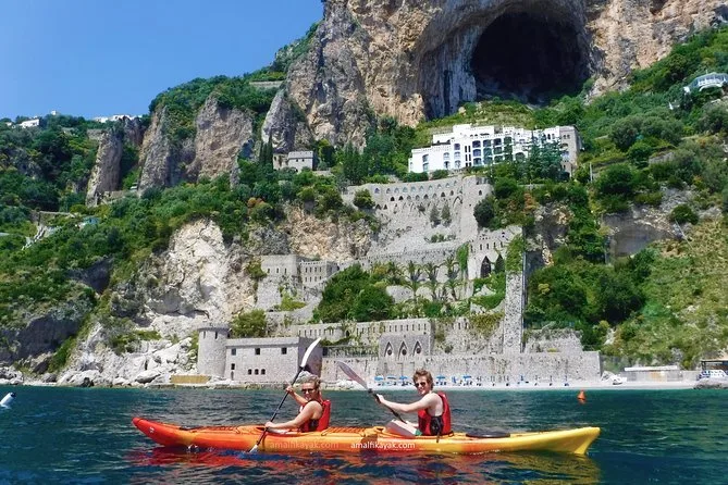 Remarás por la costa agreste de Amalfi en kayak con un guía local, entrarás en cuevas con paredes de minerales, harás paradas en playas solo accesibles por mar para nadar o hacer snorkel, y escucharás historias sobre torres antiguas y dulces creados por monjas. Prepárate para el sabor a sal en los labios y vistas inolvidables.