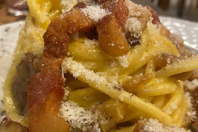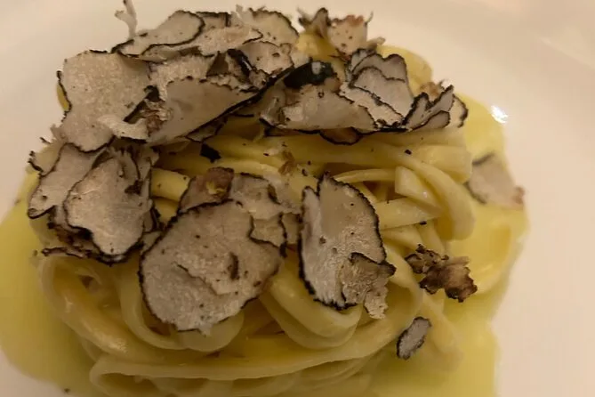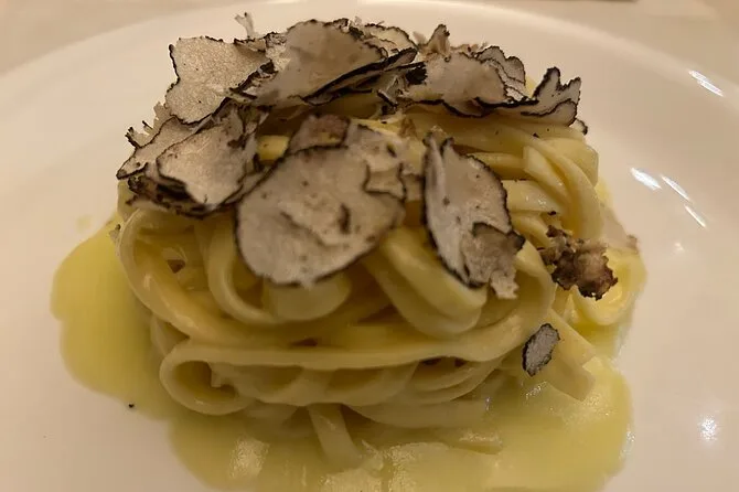 Tu noche incluye degustaciones de queso y prosciutto con vinagre balsámico de 30 años explicado por tu guía, paradas de comida callejera para crostini, una cena sentada con pasta casera de trufa y bistec a la florentina con vino ilimitado durante toda la velada, además de elegir entre gelato auténtico o cannoli fresco antes de despedirte de las calles iluminadas de Florencia.