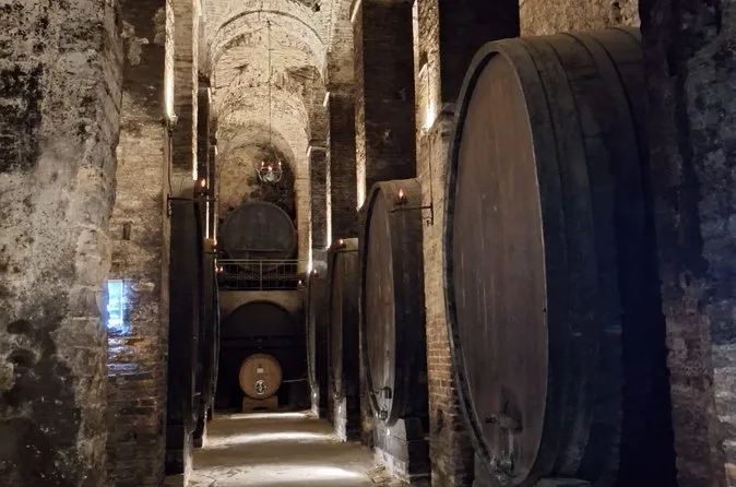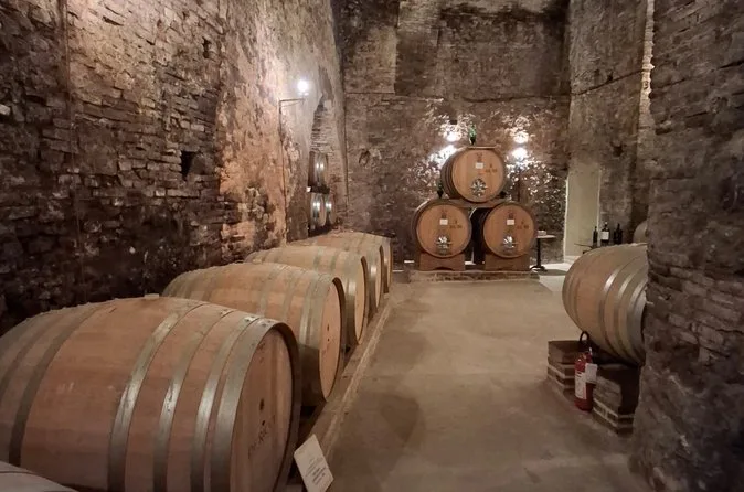 Descenderás bajo las calles de Montepulciano para recorrer antiguas bodegas etruscas con guía, catar seis vinos DOC y DOCG —incluido el Vino Nobile— y disfrutar de bruschetta fresca con aceite de oliva local. Prepárate para historias, túneles frescos llenos de barricas y un viaje al pasado.