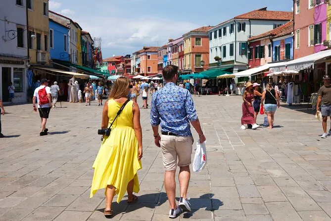 Tu día incluye transporte privado en taxi acuático desde Venecia a Murano y Burano (y regreso), demostraciones en vivo con artesanos locales de soplado de vidrio y encaje, un recorrido guiado a pie flexible en cada isla con muchas historias, y todo el comentario de tu guía personal durante estas cuatro horas juntos.
