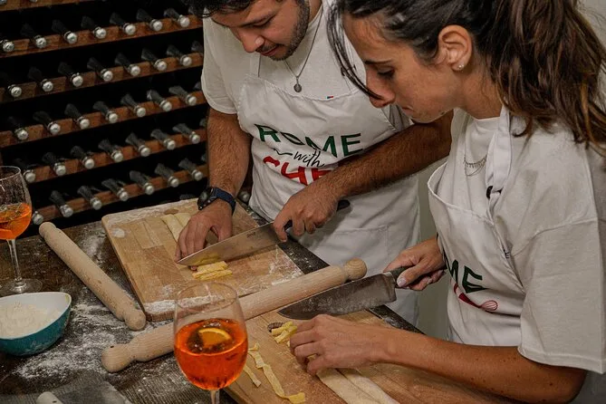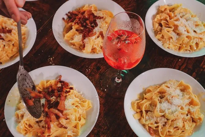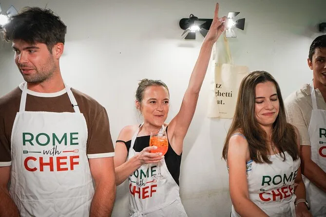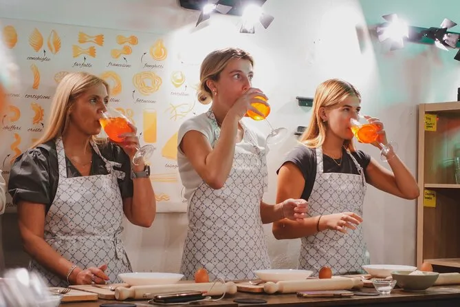 Tu tarde incluye la guía experta de una chef local mientras preparas fettuccine caseros con salsa tradicional en el centro de Roma. Disfrutarás tres spritz italianos — Aperol, Hugo y Limoncello — además de agua y refrescos ilimitados durante toda la clase. Las recetas son para que las lleves a casa y sigas cocinando mucho después de tu viaje a Roma.