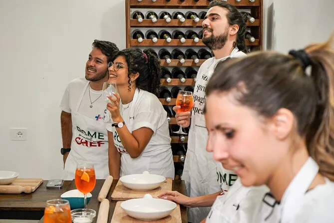 Ríe con nuevos amigos mientras haces pasta fresca en una cocina romana llena de vida, guiado por una chef local que comparte recetas y anécdotas familiares. Prueba tres spritz italianos distintos mientras cocinas y disfrutas en el corazón de Roma. Llévate las recetas y recuerdos que duran más que la harina en tus manos.