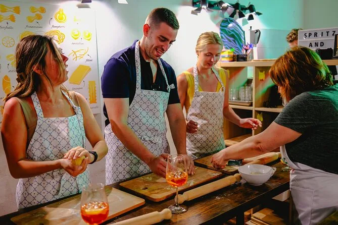 Incluye hacer pasta fresca con salsa, probar tres spritz diferentes, agua y refrescos ilimitados, recetas para llevar y la guía de un chef local.