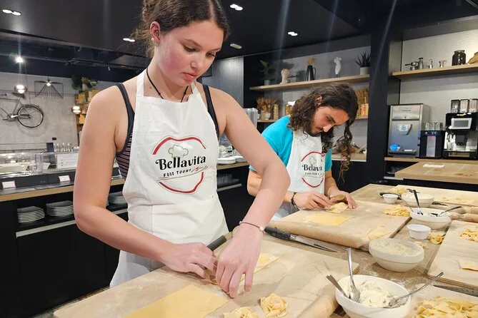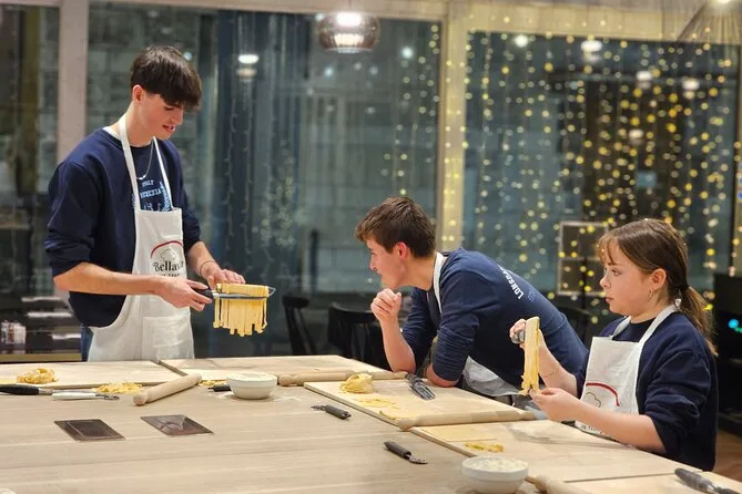 La cocina ya estaba cálida cuando entramos — no caliente, sino ese calor acogedor que huele a harina y a mantequilla. Nuestro chef, Marco, nos sirvió unas copas de prosecco al instante (algo elegante pero que me relajó al momento). Nunca había hecho pasta desde cero, así que estaba un poco nervioso. La mesa estaba cubierta de harina y huevos, y Marco no paraba de decirnos que no nos preocupáramos por el desorden — “Así sabes que es auténtico,” decía. Eso me gustó.